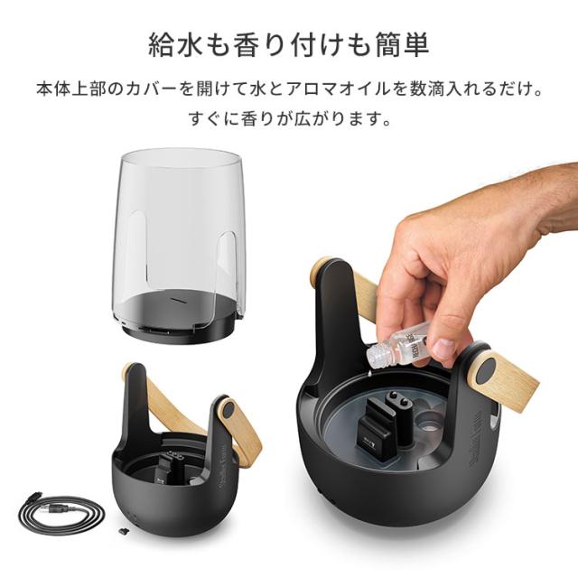●どこへでも連れていける 充電式で持ち運び自由。バンブーハンドルがアクセントになったデザインは、どんな場所にも馴染みます。 ●幻想的な炎の演出 冷たいミストが作り出す、まるで本物の炎のようなゆらめき。見ているだけで心が落ち着く癒しの空間を演出します。 ●屋外でも安心のIP44防水 テラスやバルコニー、キャンプなど屋外でも活躍。突然の雨にも対応できるIP44の防塵・防水性能を備えています。 ※完全防水ではありません。 ●天然のアロマで虫よけ対策 エッセンシャルオイルを使用することで、気になる虫を寄せ付けません。特に屋外使用におすすめのオイルは、レモングラス、シトロネラ、ユーカリ、ペパーミント、ゼラニウムなどです。 ●給水もラクラク 本体上部のカバーを開けるだけで、簡単に給水が可能。お好きなアロマオイルを1〜2滴垂らすだけで、すぐに香りが広がります。 |