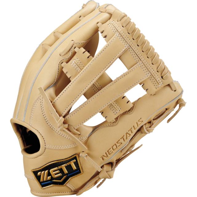 特徴:M号ボールに負けない、捕球ミスを軽減させるボックス型・手口逆巻・親指芯4層構造。背面紐通しとウェッブ部の紐穴補強も施した高耐久仕様。高級感あるネオステイタスウェルダーラベル搭載。