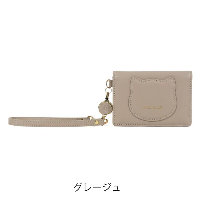 【レビュー投稿で+5%還元】ポールアンドジョー アクセソワ パスケース 定期入れ カードケース 猫 ねこ 二面パス 両面パス レディース PJA-W1363 CAT FACE キャットフェイス PAUL&JOE ACCESSOIRES リール付き IDカードケース
