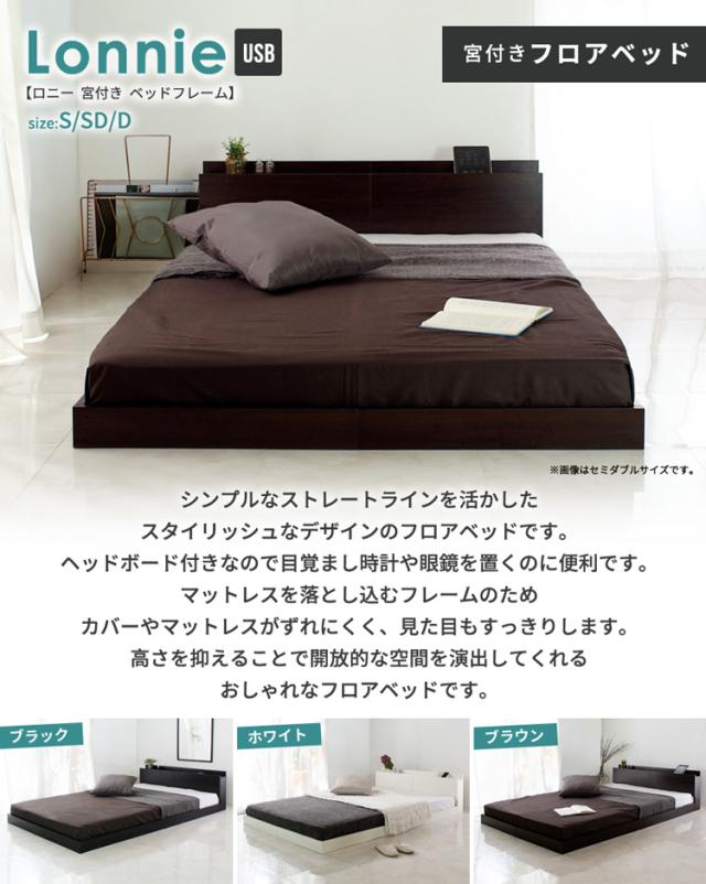 Lonnie USB【ロニーUSB】宮付きフロアベッド ブラックマットレスセット ブラウン Dサイズ【ブラックマットレス付き】