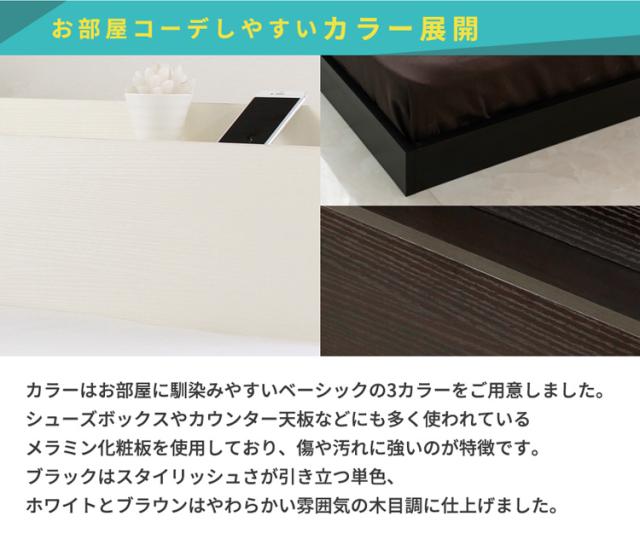 Lonnie USB【ロニーUSB】宮付きフロアベッド ブラックマットレスセット ホワイト SDサイズ【ブラックマットレス付き】