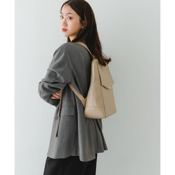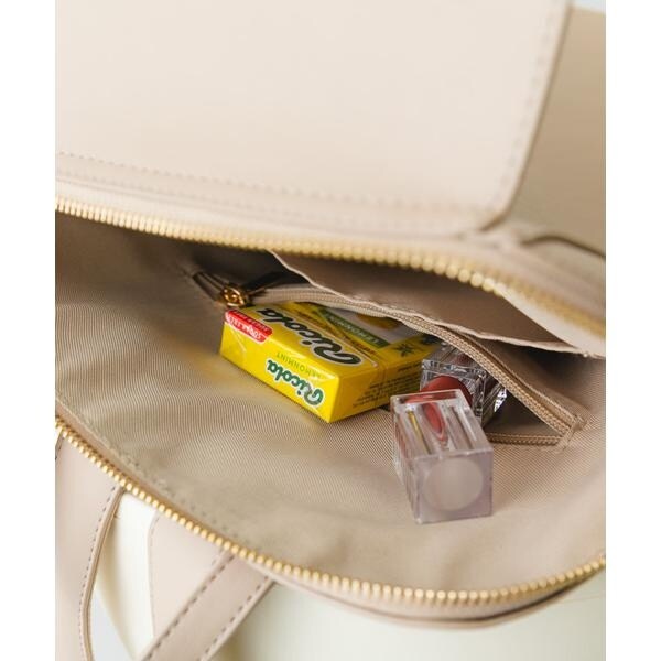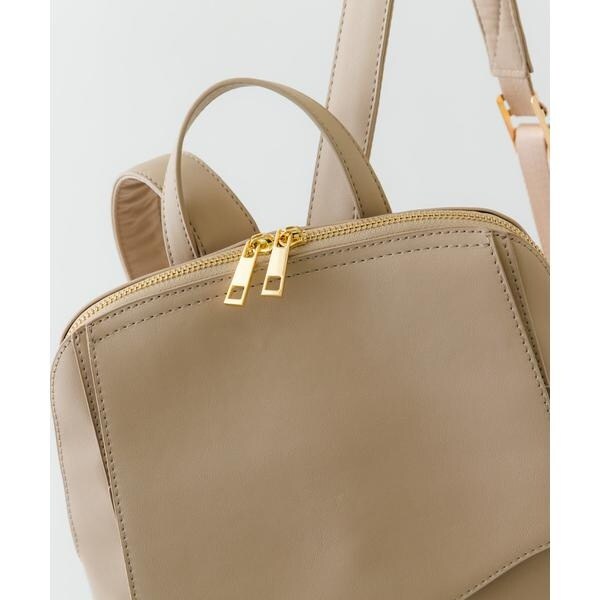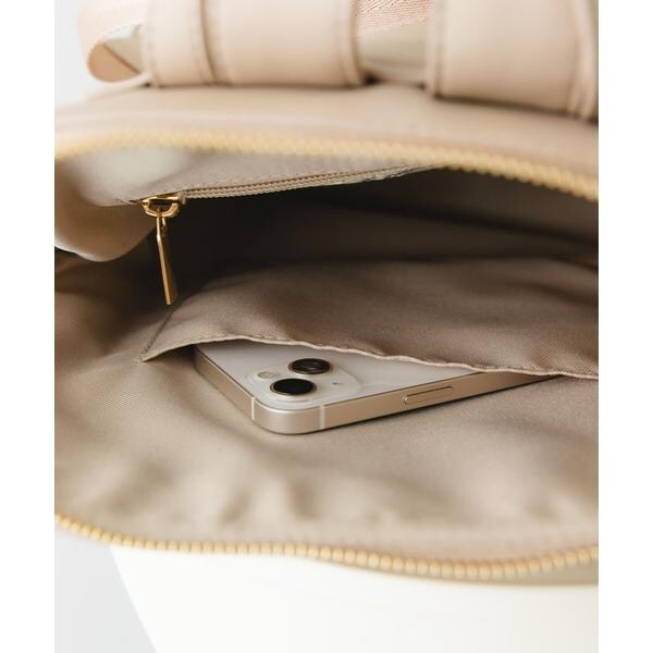 すっきりとしたフォルムにゴールドの金具が洗練された雰囲気に。背負った時も綺麗に収まるコンパクトなフォルムながら、内ポケット付きで小物の整理もスムーズです。