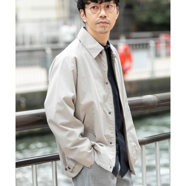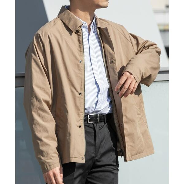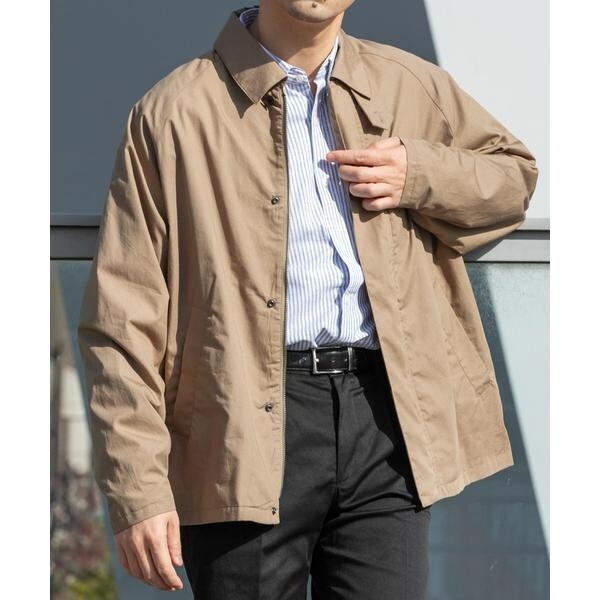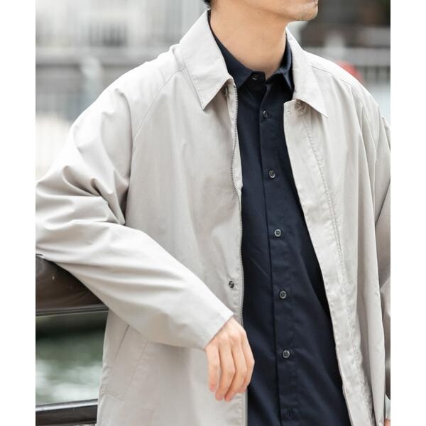 春アウターとして定番のステンカラーコートを羽織りやすいショート丈にし、撥水機能もプラスしてアレンジしたスプリングショートコート。