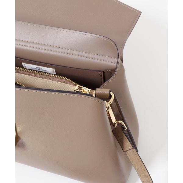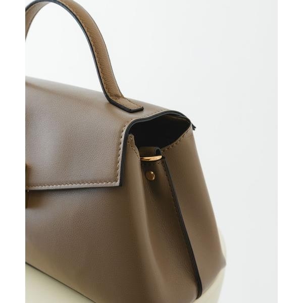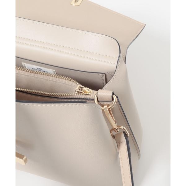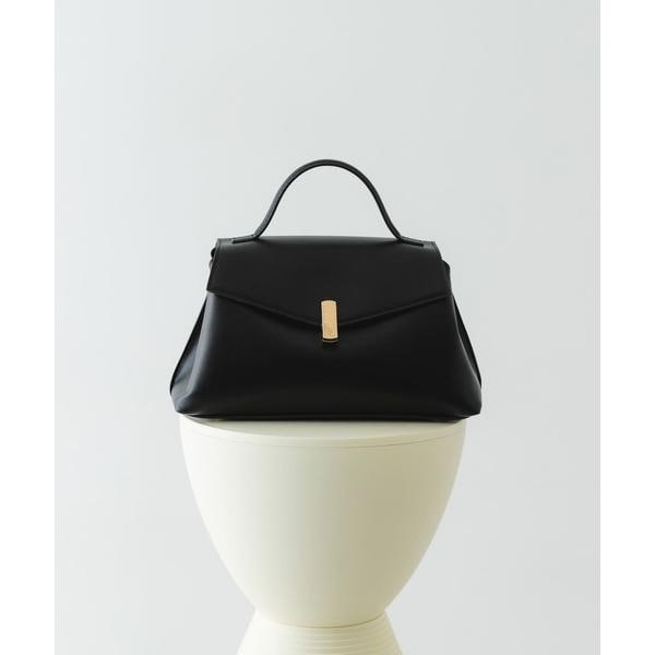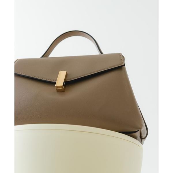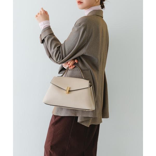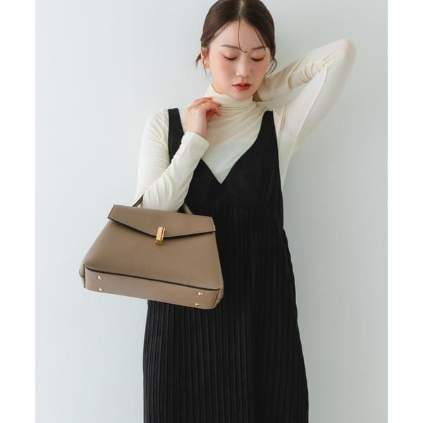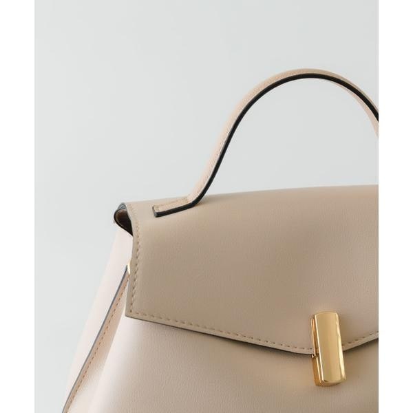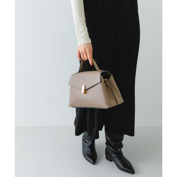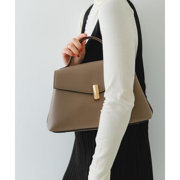 ゴールドの金具とフラップデザインが、上品な印象を演出するハンドバッグ。