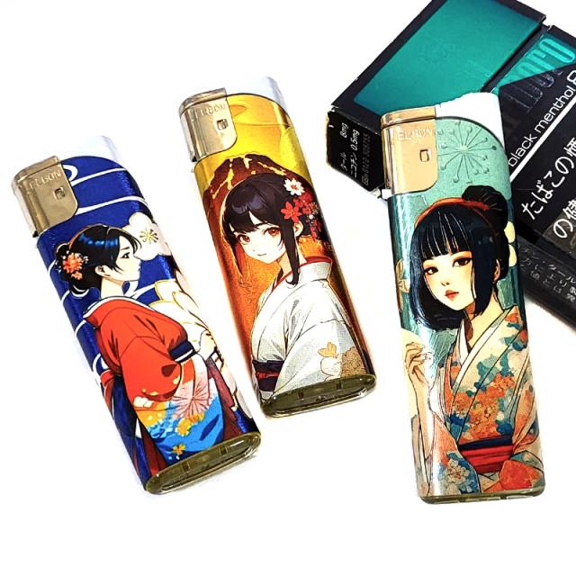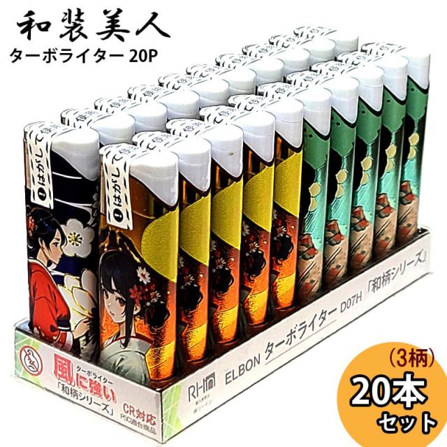 ターボライター 和柄 20本セット 和装美人 使い切り ガスライター ジェット 和風 おしゃれ 芸者 女性 屋外 使い捨て 日本 喫煙具 ギフト プレゼント