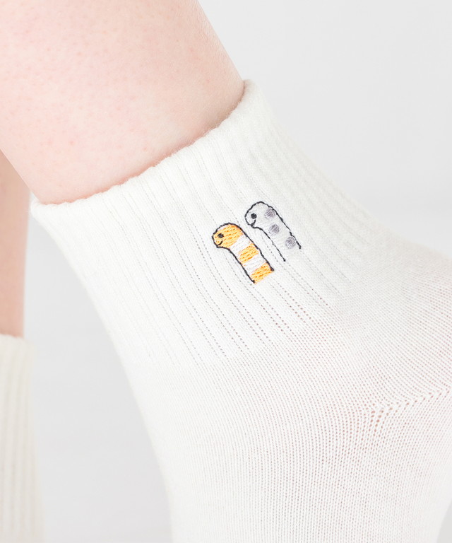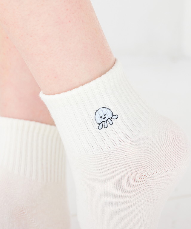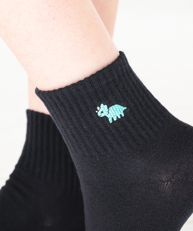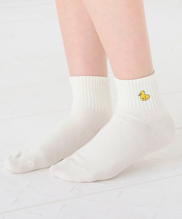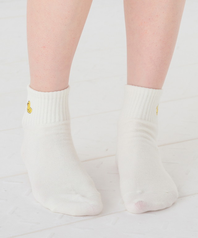 靴下 ソックス ショート丈 ワンポイント 刺繍 綿混 ガーリー オールシーズン 白 黒 レディース Honeys ハニーズ ワンポイントショート丈ソックス
