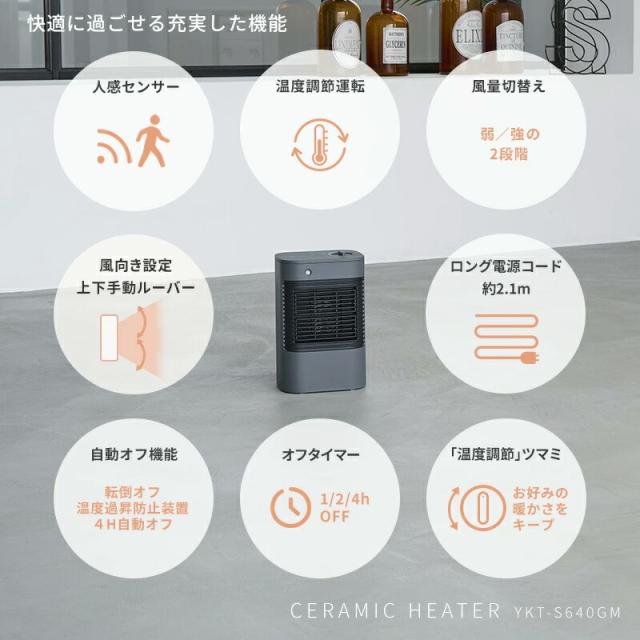【選ぶ景品付】 YUASA 人感センサー付き セラミックヒーター YKT-S640GM ユアサ 電気ファンヒーター ロング電源コード 2.1m 小型 ファンヒーター 640W 400W 節電センサー キッチンヒーター 電気ヒーター 脱衣所ヒーター トイレヒーター 電気ストーブ 足元ヒーター YKTS640GM