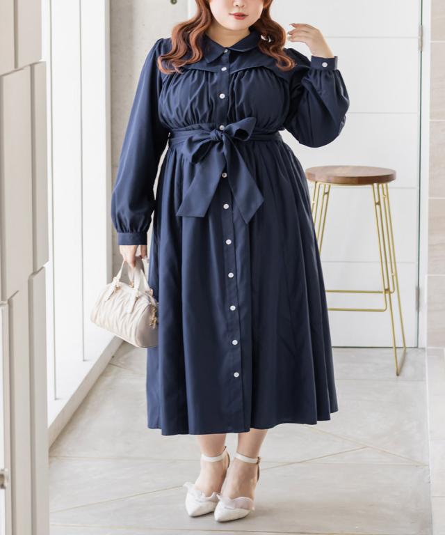 | 3Lサイズを着用して、着心地はピッタリでちょうどよかったです♪ ハリのあるシャツ生地がさらっと涼しく、シルエットもきれいにキープしてくれます◎ ウエスト切替のおかげで自然とスタイルアップして見え、自分で結ぶベルト付きなのでよりメリハリが出て着やせ効果抜群です! 甘すぎず大人っぽい雰囲気なのもお気に入りポイントです!凝ったディティールとデザインなので、とっても着映えします! お出かけやデートにぴったりの主役ワンピです。 |