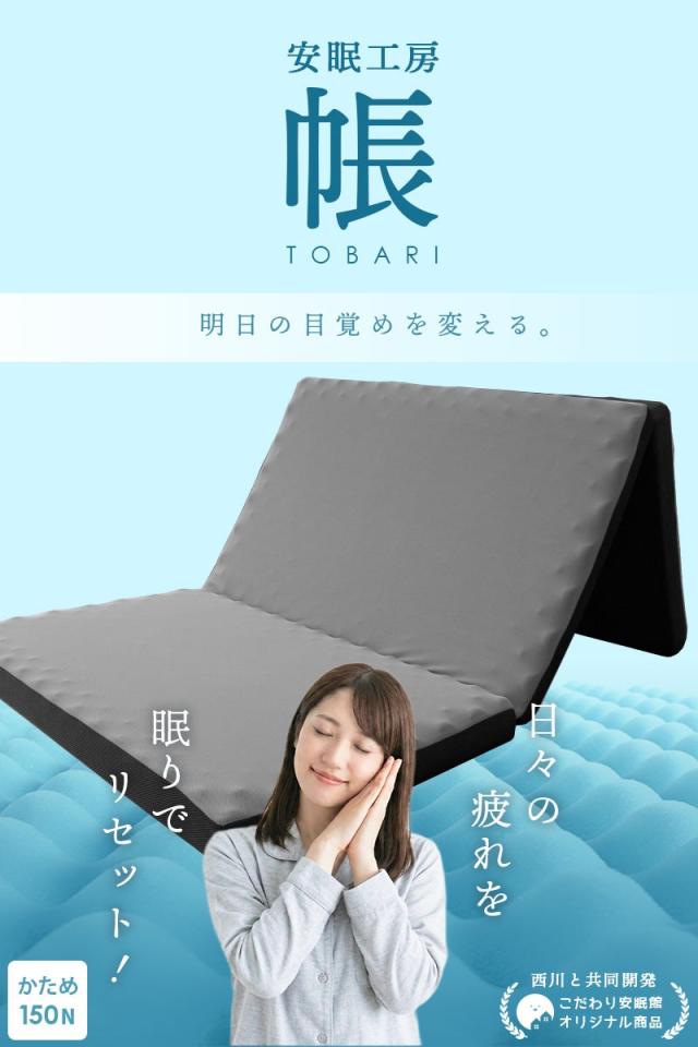 [keyword | 西川 東京西川 マットレス 折りたたみ 点で支える 高反発 凹凸 肩こり対策 寝返り 健康敷きふとん 西川産業 敷き布団 敷布団 ウレタン ふとん プロファイル 快眠 ベッド マットレス ノンスプリング 圧縮梱包 三つ折り 安眠工房 帳 TOBARI マットレス ]