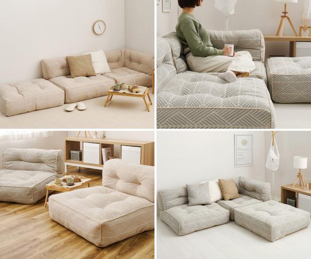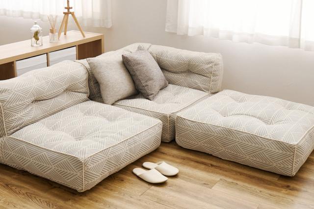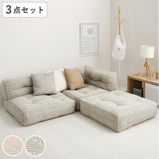 《 LH20295 ワンルーム 1人暮らし ロースタイル ひじ掛け 付き 足なし おしゃれ オシャレ お洒落 ファブリック 布 インテリア 家具 シンプル ナチュラル 北欧 ふっくら ふんわり コーナーソファ 座面広い フレームレス 天然コットン100% 組み合わせ 》