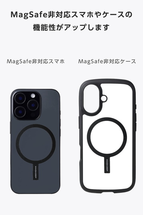 ケースに貼るだけで、さまざまなMagSafe対応アクセサリーが使えるようになるマグネットリングステッカーです。MagSafe非対応のスマホケースでも、これを貼ればスマホリングやスタンド、カードケースなどの磁力アクセサリーをしっかり取り付け可能。内蔵マグネットにより、アクセサリーを固定する強力な吸着力が特長です。