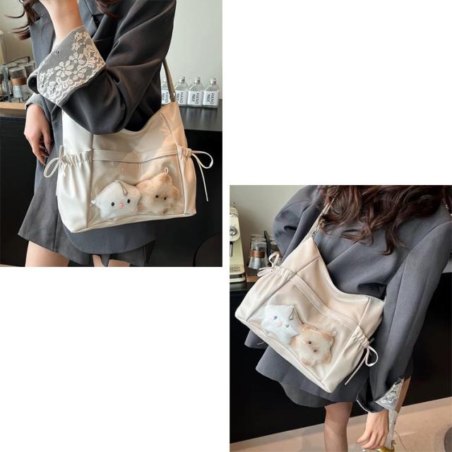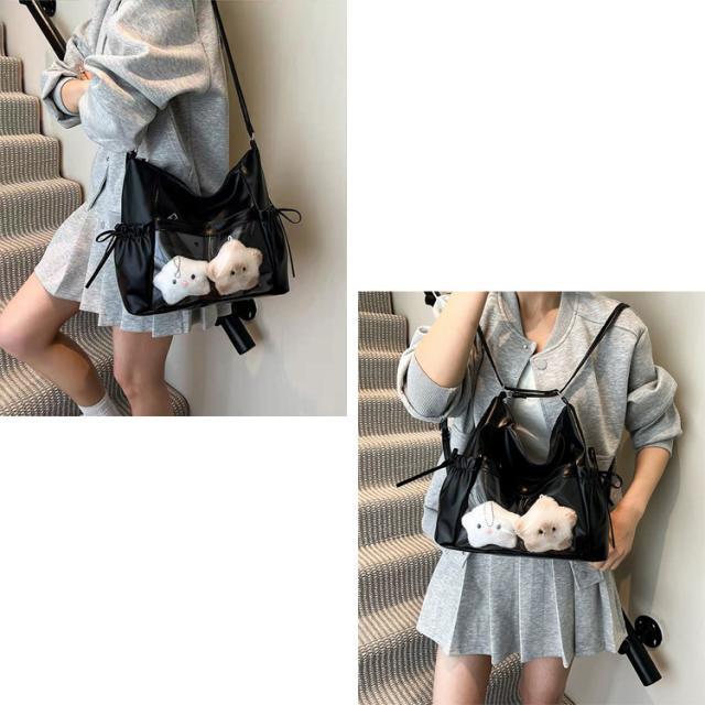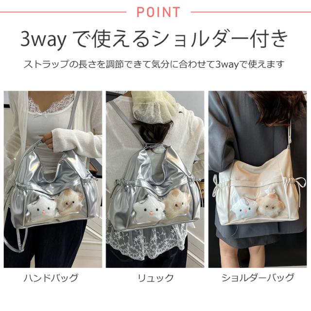 全品送料無料一部除く サイドリボン クリアポケット付き 痛バッグ【即納】バッグ 鞄 カバン かばん 斜め掛けバッグ リュック 大容量 2way 3way 痛バ 見せバッグ 透明 キーホルダー チャーム アクキー リボン付き レディース 韓国 流行り トレンド かわいい