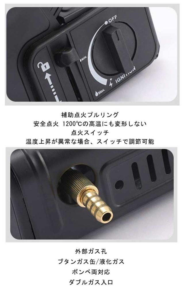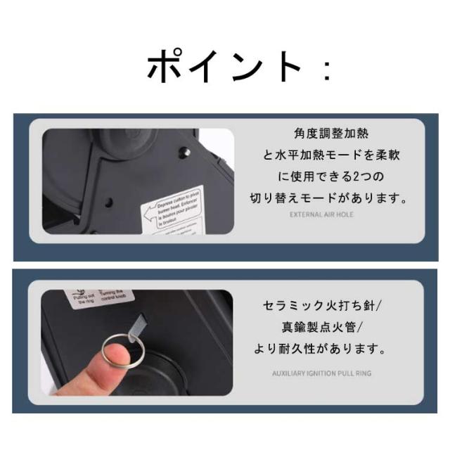 | 多機能ガスストーブ 電源不要 速暖 持ち運び簡単 1台2役 ポイント: 1.多孔質ハニカムセラミック加熱を採用し、急速に加熱でき、さらなる熱伝達によりエネルギー収集とガス節約効果を実現します。 2.角度調整加熱と水平加熱モードを柔軟に使用できる2つの切り替えモードがあります。 3.セラミック火打ち針/真鍮製点火管/より耐久性があります。 4.持ち手デザイン/より携帯性が高いです。 パッケージリスト: 多機能ポータブルヒータ* 1 さまざまなシーンで使えます *ガスボンベは付属しておりません。 キャンプに便利な多機能ストーブ 暖房用としてはもちろん、お湯を沸かしたりちょっとした調理もできるのでキャンプなどのアウトドアに必須なアイテム! 縦向き 暖房用ヒーターとして使用するときに最適! ヒーターの向きを変更できる! 横向き クッキングヒーターとして使用する場合に最適です! 市販のガスボンベも使用可能です!! 220gまたは250gのブタンガス、カートリッジLPG(液化ブタン)のガスカートリッジを使用することが出来ます。 製品詳細 カットンを押してバンパーヘッドを回転させます。 二種類のモード切替 立て - 暖房モード 平置き - 加熱モード 外部ガス孔 ブタンガス缶/液化ガス ボンベ両対応 ダブルガス入口 補助点火プルリング 安全点火 1200℃の高温にも変形しない 点火スイッチ 温度上昇が異常な場合、スイッチで調節可能 | |