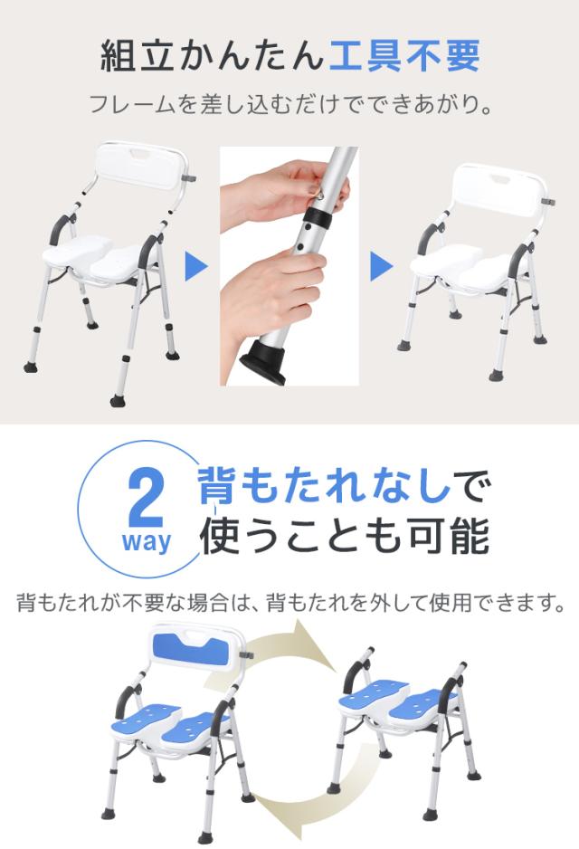 ≪新商品≫ シャワーチェア 折りたたみ U字溝座面 肘掛け付き 4段階高さ調節 介護 背もたれ付き 分離可能 風呂 椅子 軽量 耐荷重150kg 高齢者 立ち上がり補助 バスチェア シャワーベンチ 滑り止め 介護用品 コンパクト 入浴介助 シャワーフック付き 送料無料