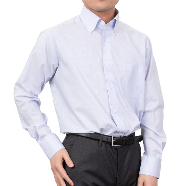 a.v.v 形態安定 超消臭仕立て ビジネスシャツ yシャツ ボタンダウン 青と紫のストライプ【YDD202-360】