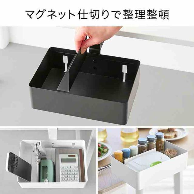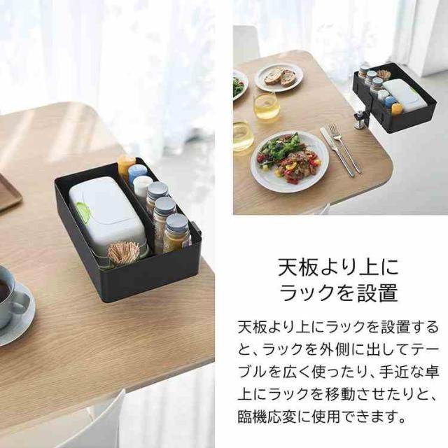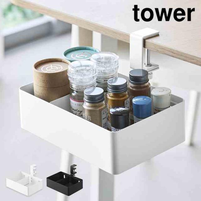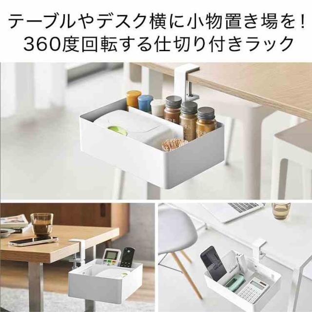 山崎実業 テーブル横回転収納ラック タワー 仕切り付き tower 公式 10365 10366 ホワイト ブラック 360度 回転 机 横 小物入れ 浮かせる 収納 トレー 文房具 デスク 整理整頓 スチール ラック 調味料 リモコン リビング ダイニング キッチン スマホ置き 後付け ネジ 固定