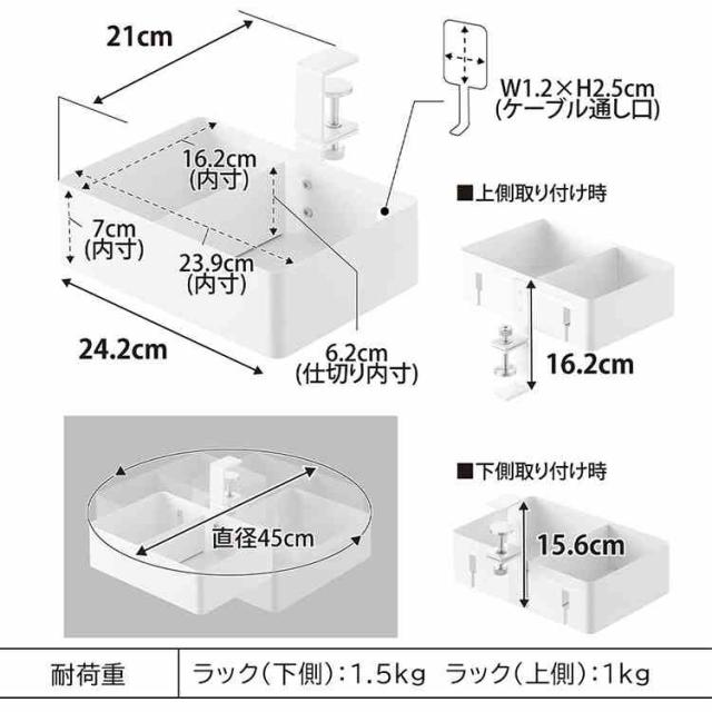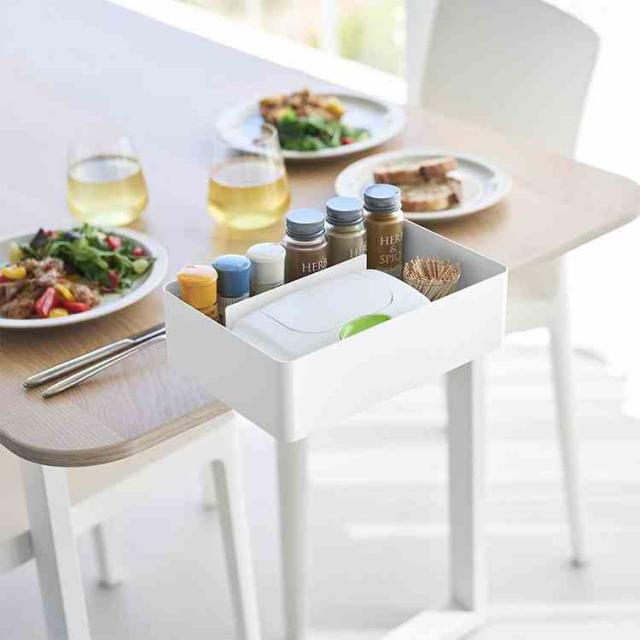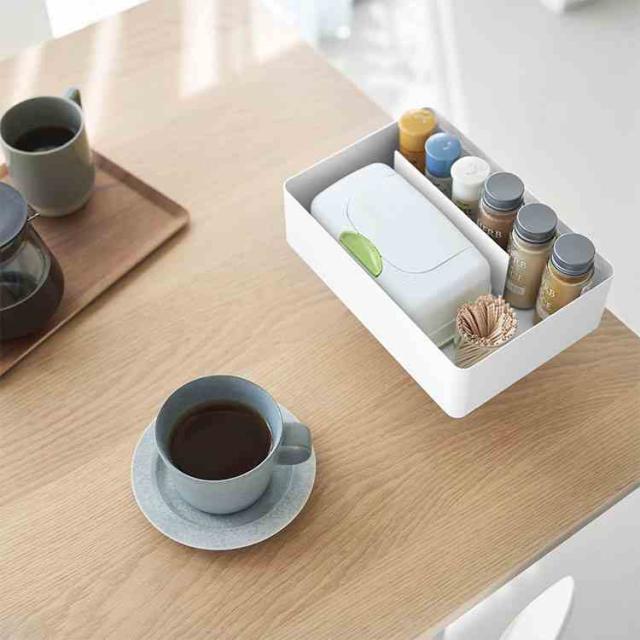 ![]() ![]() テーブルやデスク横に小物置き場を!360度回転する仕切り付きラック テーブルやデスクのフチに調節ネジで簡単に設置できる、小物収納に便利なスチール製ラック。食卓では調味料や爪楊枝、ローテーブルではリモコンやメガネ、デスクではスマホや文房具、などと、手近にあると便利な小物をすぐそばに一括収納できます。 ![]() ![]() ![]() ![]() ![]() マグネット仕切りで整理整頓 ラック本体にマグネットでくっつく仕切りが付属しているので、収納する物の大きさに合わせて、中を縦横自由に仕切れます。 ![]() 充電ケーブルを通せるスリットが2か所付いています 充電ケーブルを通せるスリットが側面に2か所あり、スマートフォンを充電しながら収納できます。充電後もケーブルをその場にホールドできるので、次の使用時にもスムーズに接続できます。 ![]() ![]() ![]() ![]() ![]() ![]() ![]() ![]() ![]() Details 【テーブル横回転収納ラック】 手に取りやすいテーブル横に取り付けできる、360度回転式の収納ラックです。設置場所や用途に合わせて、デスク下側・上側の2通りの取り付けが可能。クランプ式の固定構造でしっかりと設置できます。必要なときにサッと回転させて取り出せ、使わないときはすっきり収納。テーブル上を広く使えて、スペースの有効活用に!調味料やリモコン、小物類をまとめて収納でき、スマートフォンを収納しながら充電することも可能です。充電しないときは、ケーブルの先端を引っ掛けておくことができます。マグネット付きの仕切りは、収納物に合わせて自由に位置を調整できます。 ブランド名 tower / タワー JAN 4903208103657/4903208103664 品番 10365/10366 サイズ ラック(上側):約H16.2×W24.2×D21cm 内寸サイズ 収納部:H7×W23.9×D16.2cm ケーブル通し口:H2.5×W1.2cm 仕切り:H6.2cm 重量 約1150g 耐荷重 ラック(下側):1.5kg(静止荷重) ラック(上側):1kg(静止荷重) 素材 本体・固定用パーツ・仕切り:スチール(粉体塗装) マグネット 緩衝材・滑り止め:シリコーンゴム 回転時の最大可動範囲 直径45cm 取り付け可能な場所 天板の厚さが1.2?5.5cm(幕板やパイプ等を含む) 幅3cm以上(脚含まず) 奥行4.5cm以上の平らなデスク等 ※設置場所の構造や材質、形状によっては取り付けできない場合があります。 付属品 六角レンチ 生産国 中国 ご注意 ※表記サイズより、多少の誤差があることがございます。 ※商品の画像はできる限り実物に近づけるよう配慮しておりますが、お使いのモニターやご覧になる環境によりましてはカラーの見え方に差が出る場合がございます。ご了承くださいませ。 関連キーワード 山実 やまじつ ヤマジツ やまざきじつぎょう yamazaki たわー towerシリーズ ブランド インテリアブランド white black 一人暮らし 新居 引越し お祝い 引越し祝い 結婚祝い 新居祝い 新築祝い プレゼント プチ ミニ ギフト お返し お洒落 Tower Table Side-Mounted Partitioned Rotating Storage Rack 吊り下げ 小物ラック スパイスラック スマホスタンド 充電ケーブル 付けたまま 回転式 まわる デスクサイド テーブルサイド 子供部屋 山崎実業 テーブル横回転収納ラック タワー 仕切り付き tower 公式 10365 10366 ホワイト ブラック 360度 回転 机 横 小物入れ 浮かせる 収納 トレー 文房具 デスク 整理整頓 スチール ラック 調味料 リモコン リビング ダイニング キッチン スマホ置き 後付け ネジ 固定 テーブルにつける収納 クランプ式 卓上 省スペース デッドスペース 収納ボックス カゴ テーブル 取り付け メガネ リモコン立て ガジェット 片付け おしゃれ シンプル 白 黒 | |||||||||