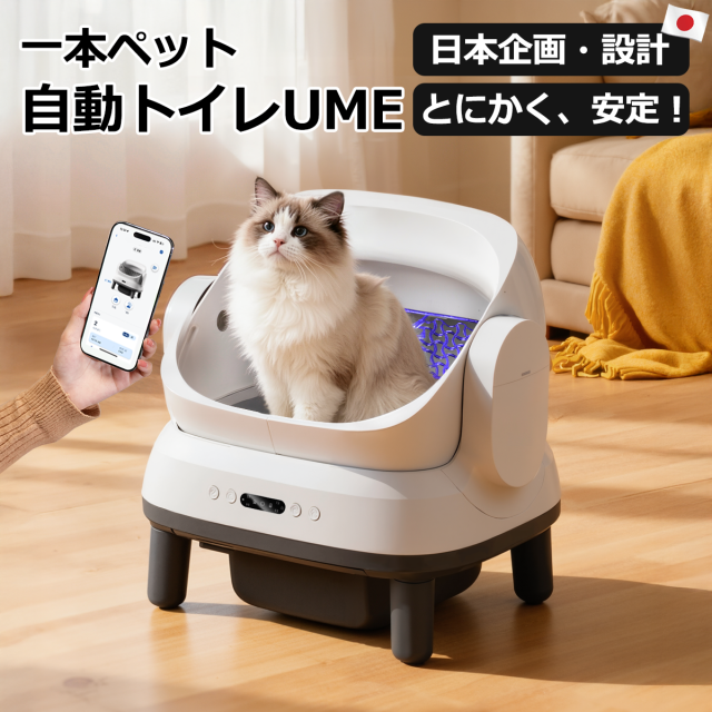自動猫用トイレ 【一本】Ume 猫トイレ 自動トイレ 猫 自動猫トイレ 全自動トイレ 大型猫対応 スマホ管理 センサー搭載 飛散防止 自動清掃 本体 正規品