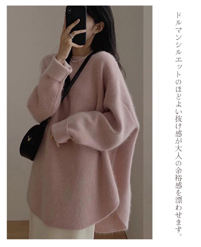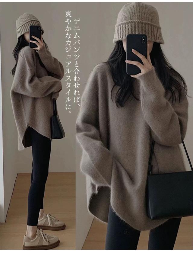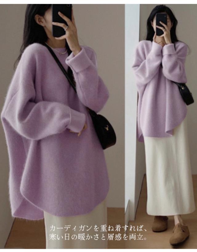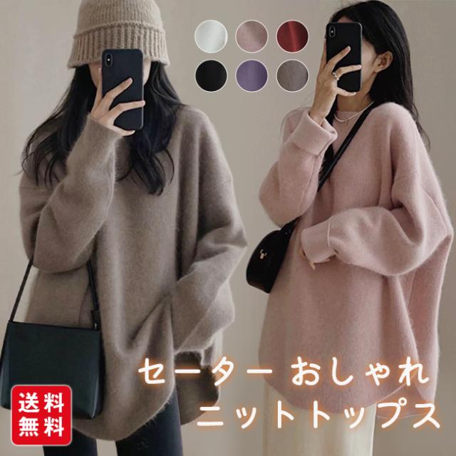 ★4/20まで10%OFFクーポン★ ニットトップス レディース 秋冬 無地 クルーネック セーター おしゃれ