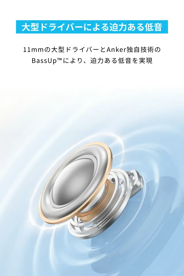 11mmの大型ドライバーとAnker独自技術のBassUpにより、迫力ある低音を実現