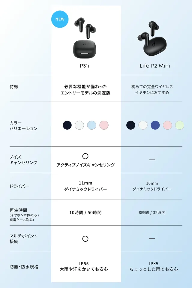 Anker Soundcore P31i (Bluetooth 6.1) 【完全ワイヤレスイヤホン/アクティブノイズキャンセリング/マルチポイント接続 / 最大50時間再生 / PSE技術基準適合】