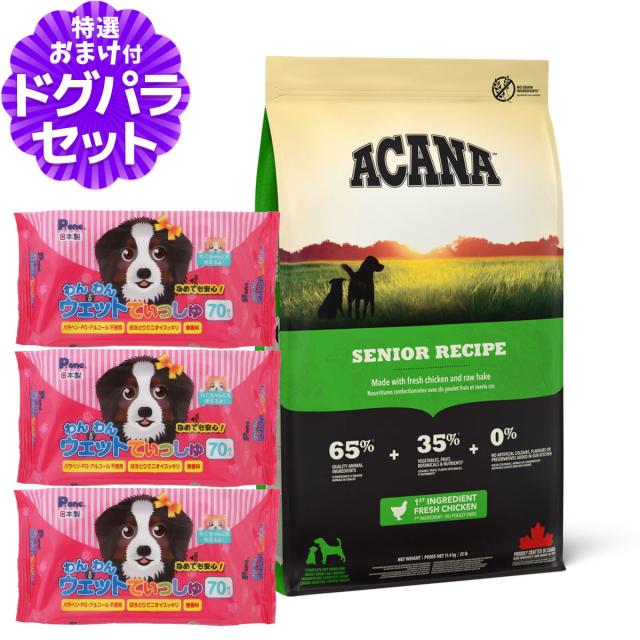 【沖縄以外送料無料】アカナ シニアドッグレシピ 11.4kg+わんわんウエットてぃっしゅ 3個