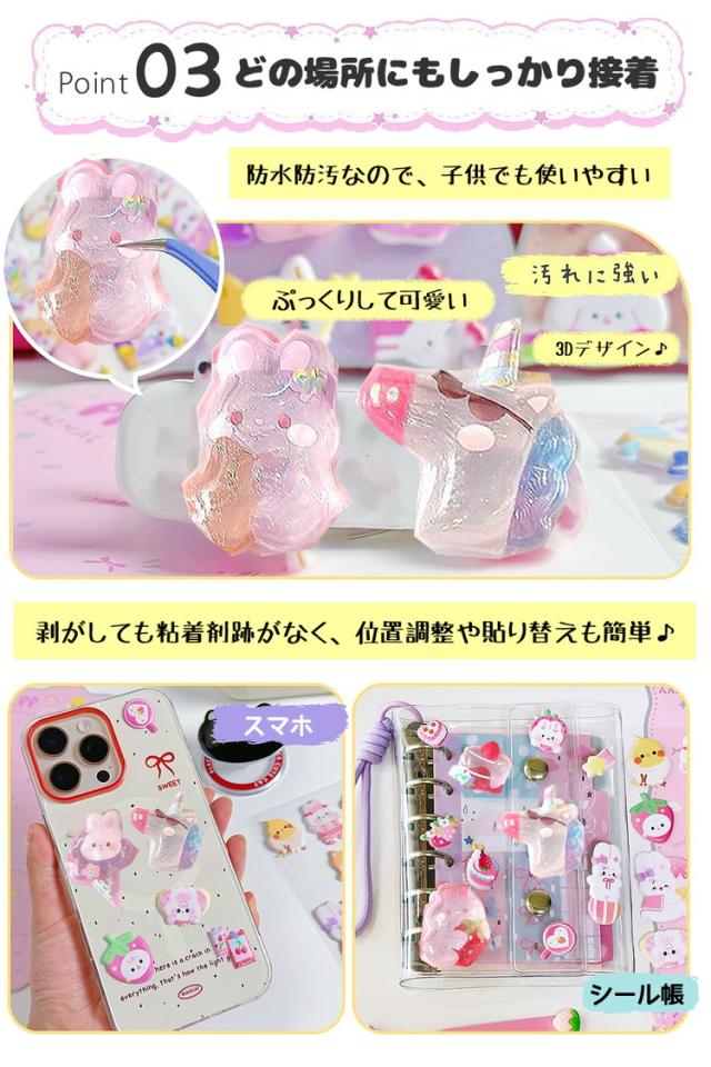 アニマル系や食べ物系まで揃ったぷっくりシールです
