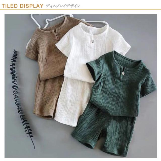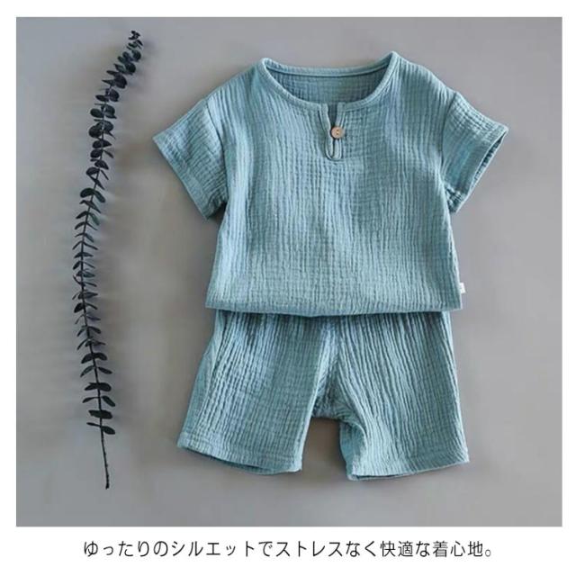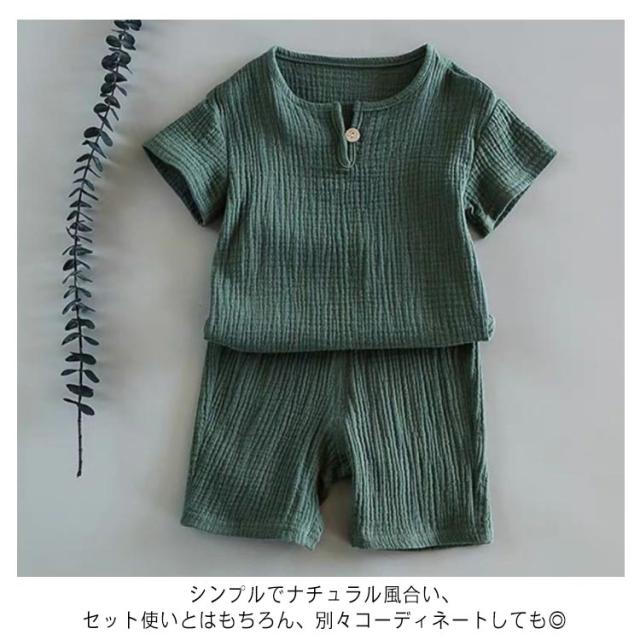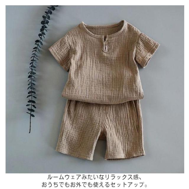 | ルームウェアや夏のあ出かけにピッタリキッズセットアップ サラッと軽やかで通気性のよい綿素材、汗をかいた夏場にもラクラク。 ゆったりのシルエットでストレスなく快適な着心地。 シンプルでナチュラル風合い、セット使いとはもちろん、別々コーディネートしても◎ ルームウェアみたいなリラックス感、おうちでもお外でも使えるセットアップ。 | |
