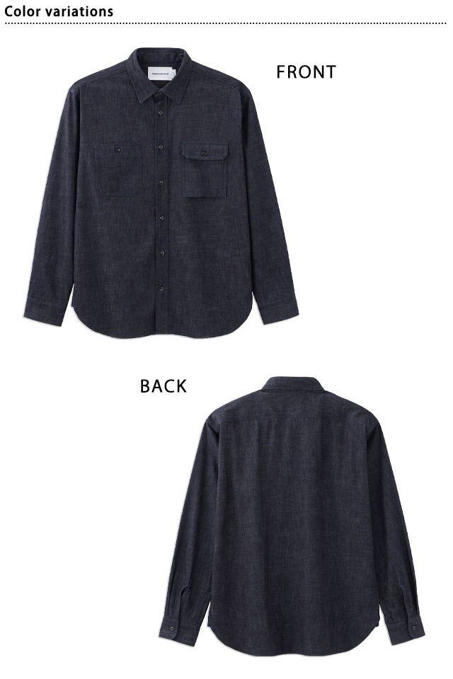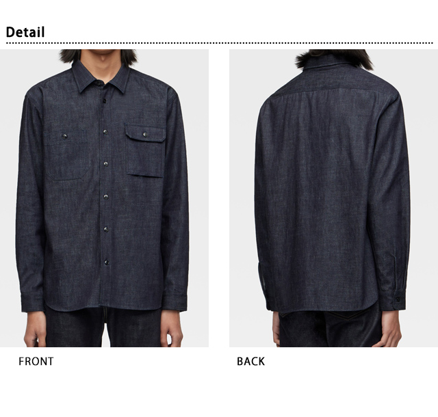 岡山の職人魂によって、デニムという素材そのものを理解し、染め・織り・縫い・洗いの細部に拘り、徹底的に探究した結果生まれる最高峰のジーンズを作り続ける【桃太郎ジーンズ】さんから「8オンスセルヴィッチデニム長袖シャツ/TRIPLE STITCH L/S DENIM SHIRT(MMLS1000)」のご紹介です。 丁寧に染め上げた特濃-TOKUNO BLUEが美しい8オンスセルヴィッチデニム。 着込むほどに味わい深い表情に変化していきます。 三本針の巻き縫い仕様の本格的なワークシャツでありながら、洗練された上品さを兼ね備えた1着です。 衿はコンパクトに、縫製を細かく仕上げ、洗練された印象を与えます。 左側は個性的なシガレットポケット仕様。 身頃に程よいゆとりを持たせたリラックスシルエットに仕上げています。 | |||||||||||||||||||||||||
