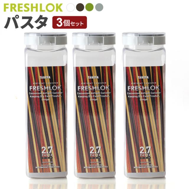 フレッシュロック パスタ用 2.7L 白/緑/茶/グレー 3個セット | 保存容器 密閉 プラスチック おしゃれ 軽い キャニスター 便利 キッチン 収納 ワンタッチ 保管 タケヤ