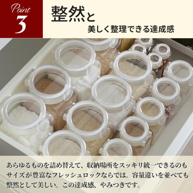 フレッシュロックが選ばれる理由フタは透明色で上面から見て内容物が確認でき、ワンタッチで簡単に開閉できます。