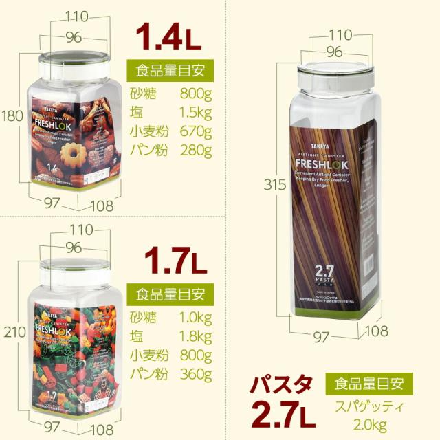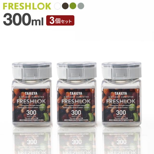 フレッシュロック 角型 300ml 白/緑/茶/グレー 3個セット | 保存容器 密閉 プラスチック おしゃれ 軽い キャニスター 便利 キッチン 収納 ワンタッチ 保管 タケヤ