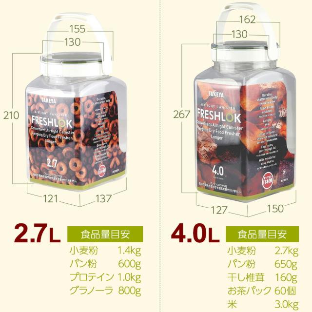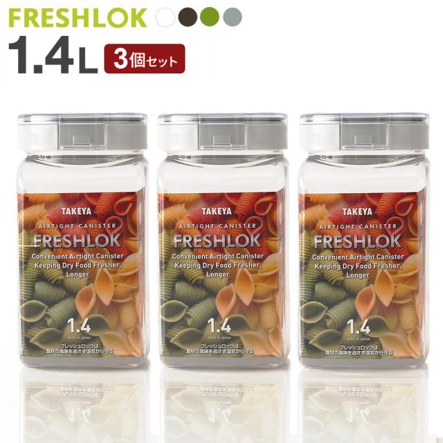 フレッシュロック 角型 1.4L 白/緑/茶/グレー 3個セット | 保存容器 密閉 プラスチック おしゃれ 軽い キャニスター 便利 キッチン 収納 ワンタッチ 保管 タケヤ