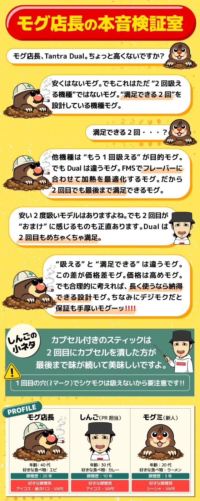1台完結の手軽さ、最後まで美味しい喫味、そして実質タバコ代半額の圧倒的コスパ——「2度吸い」をここまでスマートに、ここまで美味しく。Tantra Dual(タントラ デュアル)で、あなたの“いつもの1本”をアップグレードしてみてください。