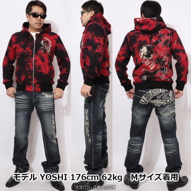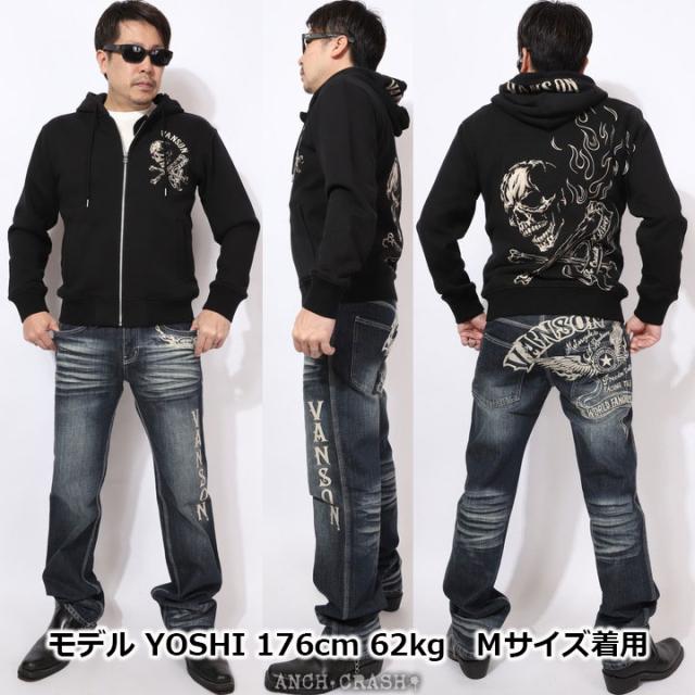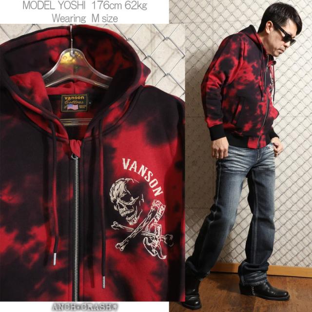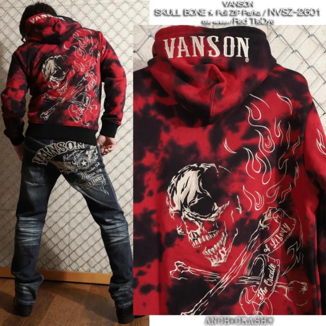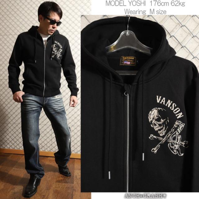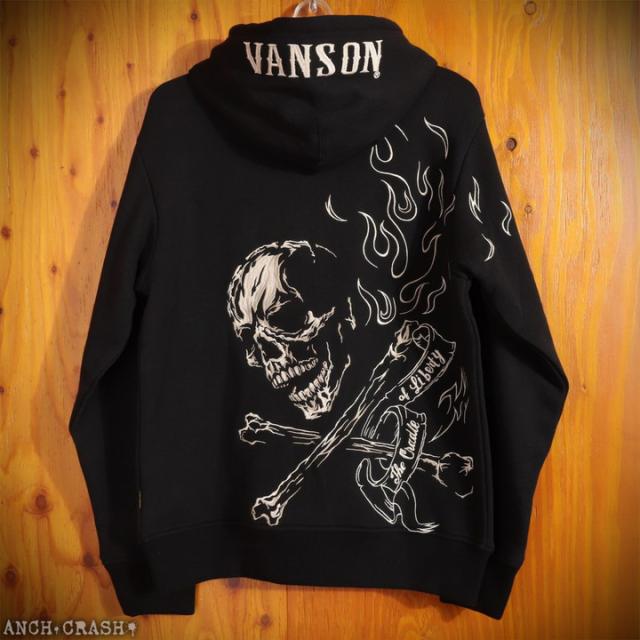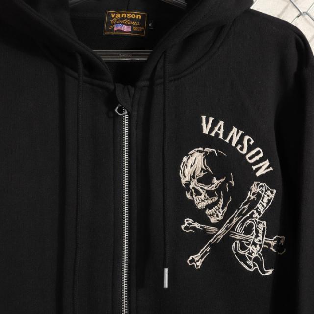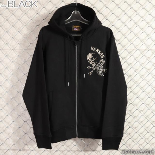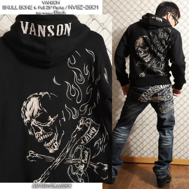 VANSON スカルボーン フルZIP パーカー (NVSZ-2601) 【送料無料】バンソン 刺繍