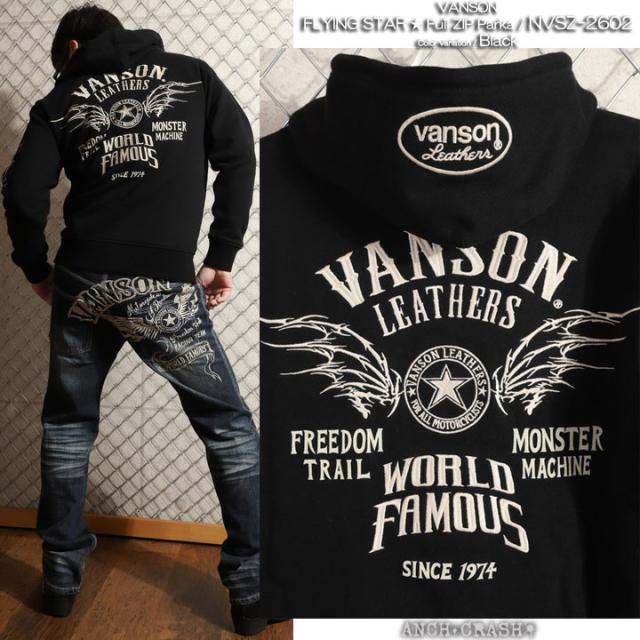 VANSON フライングスター フルZIP パーカー (NVSZ-2602) 【送料無料】バンソン 刺繍