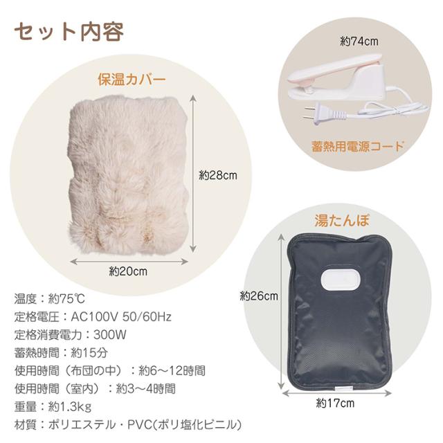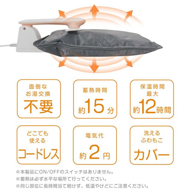 湯たんぽ ふわとろ 防寒 電気カイロ ゆたんぽ お湯交換不要 蓄熱式 PSE認証済 コードレス カバー ふわふわ もこもこ 寒さ対策 保温 長時間 繰り返し 省エネ 安全 節電 過熱防止 過熱自動オフ エコ 無害 あったか cc062a