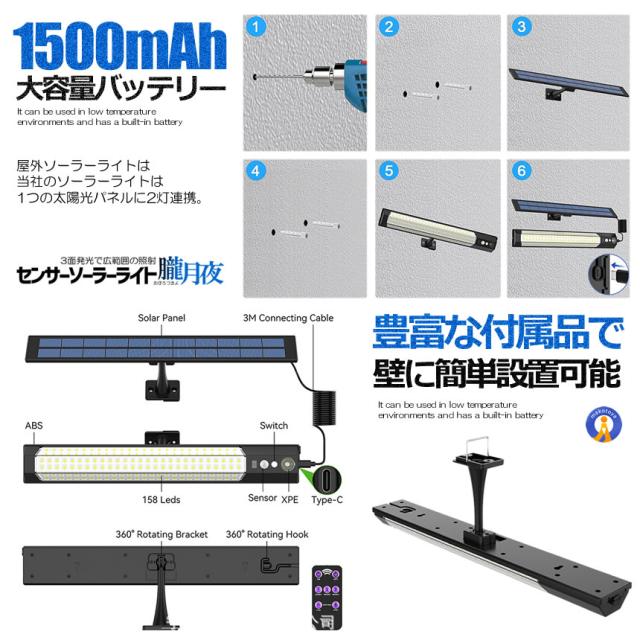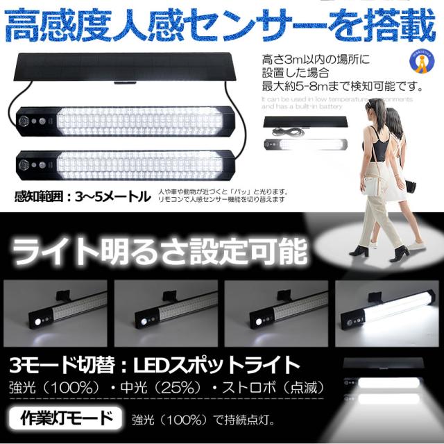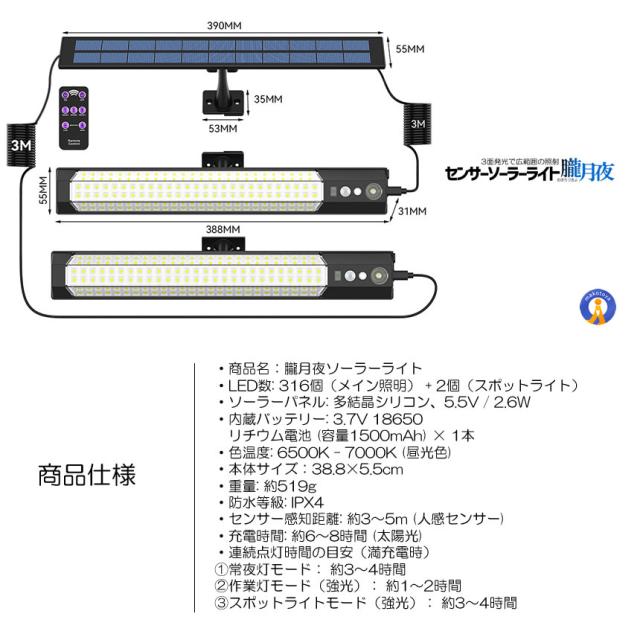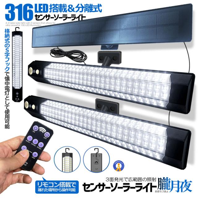 センサー ソーラーライト 分離型 リモコン付き 2灯 316LED 人感センサー 3つ知能モード OBOROZUKI