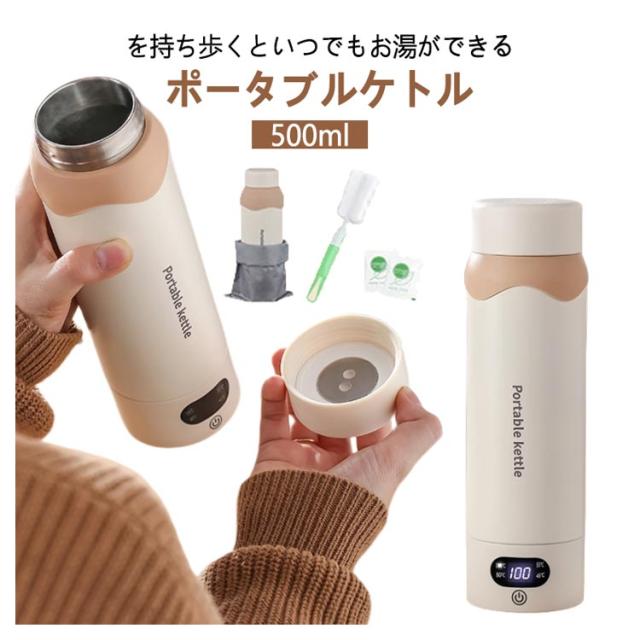 電気ケトル ポータブル電気ケトル USB保温 持ち運び 電気ケトル 電気ポット 500ml 小型 ミニ 電気ボトル ボトル電気ケトル保温機能付き ポータブルケトル 6段階温度設定 漏れ防止 自動電源OFF 空だき防止機能 5分で沸騰 湯沸かし