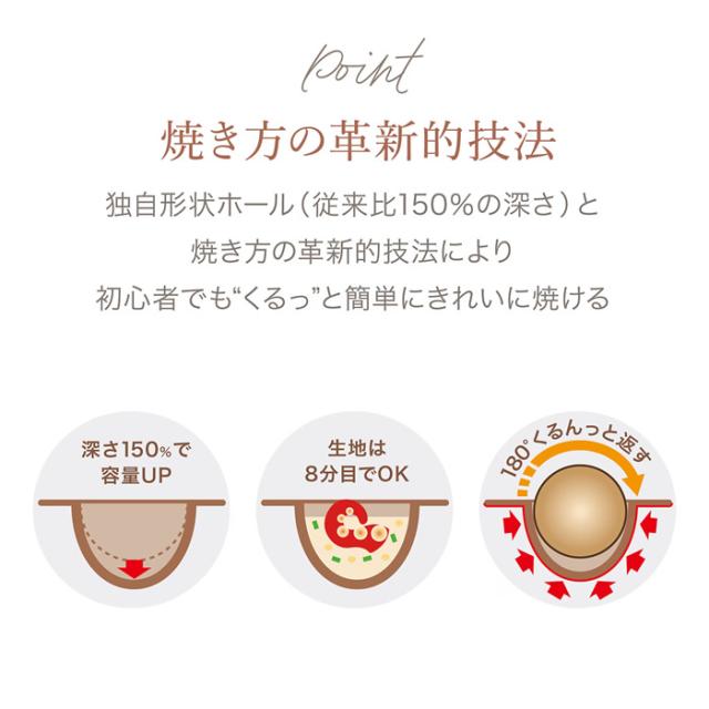 ホール深さ150%UP。生地を溢れさせない革新的焼き技法を確立。