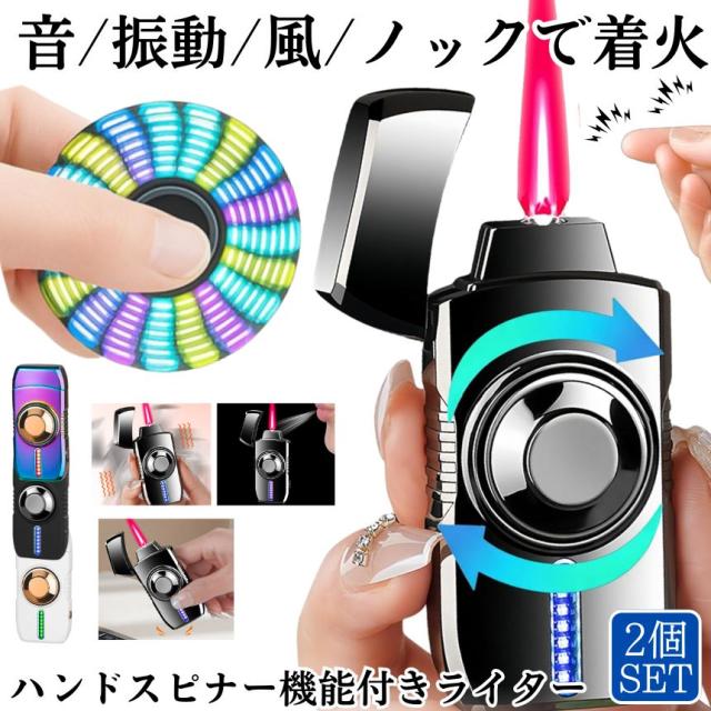 2個セット ライター ガス プレゼント おもしろ 電子ライター usb 充電式 電子 ハンドスピナー 電気 Type-C ライター 電気ライター USB 線香 着火マン 防風 アウトドア ガス タバコ 煙草 火おこし 火起こし ライト 音 振動 揺れ 持ち運び 軽量