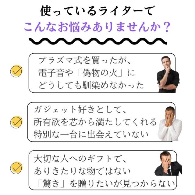 プラズマ式では味わえない「有炎」タイプのガスライターです。