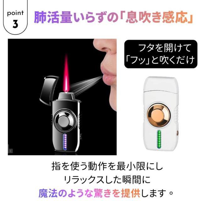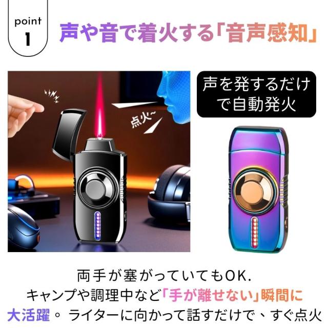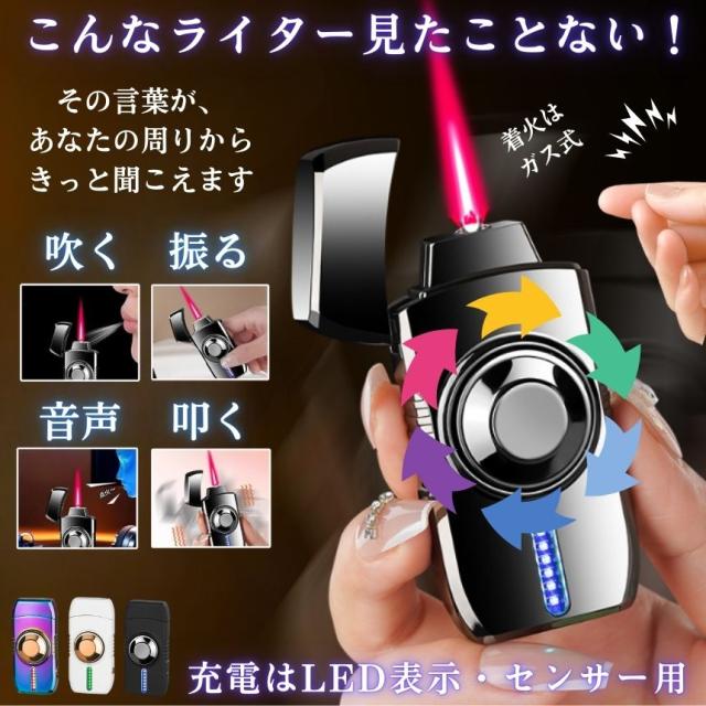 [キーワード:ライター ガスライター 防風 センサー点火 息で点火 音で点火 ターボライター お洒落 かっこいい 面白い 回転 LED ガジェット キャンプ アウトドア 贈り物 父の日 クリスマス 誕生日 プレゼント 注入式 繰り返し使える]