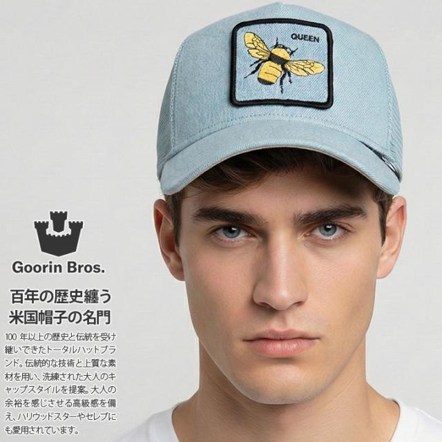 GOORIN BROS キャップ メッシュキャップ メンズ レディース 春夏秋冬用 デニム 大きいサイズ Goorin Brothers グーリン ブラザーズ 帽子 cap 深め 蜂 虫 女王蜂 ジーンズ デニムキャップ b系 ヒップホップ ファッション ストリート系 ブランド 2025 新作 101-2593-DEN02-OS
