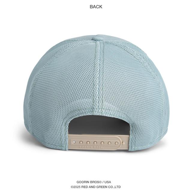 型番は、上部でつままれた1枚のフロントパネルに縮み・型崩れ防止の芯があり、メッシュ仕様のリアパネルが特徴的な「メッシュキャップ」。「メッシュ帽」や「トラッカーキャップ」、「スナップバックキャップ」、などとも呼ばれる高めのクラウンと四角型カーブバイザーによる、カジュアルな定番シルエット。