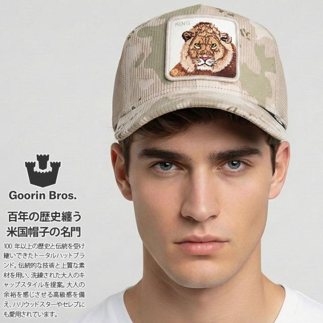 GOORIN BROS キャップ メッシュキャップ メンズ レディース 春夏秋冬用 ベージュ 大きいサイズ Goorin Brothers グーリン ブラザーズ 帽子 cap 深め 動物 アニマル ライオン King b系 ヒップホップ ファッション ストリート系 ハイ ブランド 2025 新作 101-2250-BIS01-OS