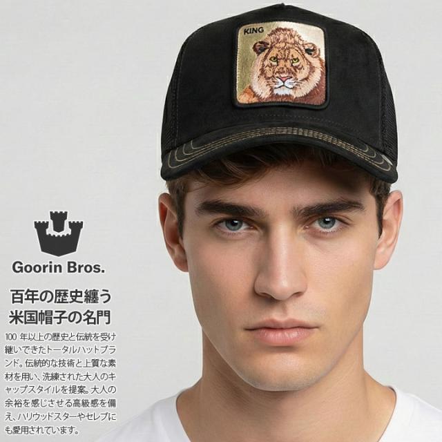 GOORIN BROS キャップ メッシュキャップ メンズ レディース 春夏秋冬用 黒 大きいサイズ Goorin Brothers グーリン ブラザーズ 帽子 cap 深め アニマル ライオン King レザーキャップ b系 ヒップホップ ファッション ストリート系 ブランド 2025 新作 101-2586-VOI01-OS