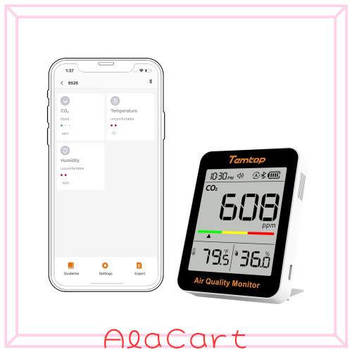 Temtop CO2モニター 二酸化炭素測定器 Bluetooth対応 携帯型 空気品質チェッカー 温湿度計 リアルタイム検出 大画面 5000ppm対応 家庭用