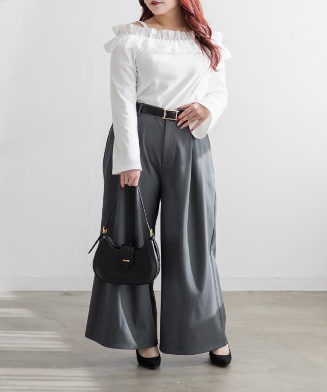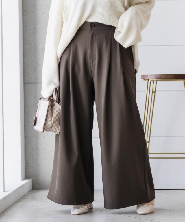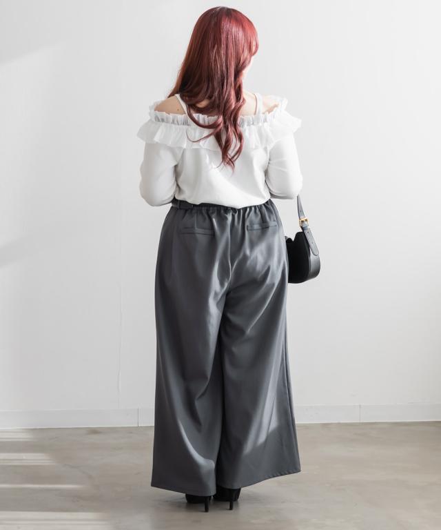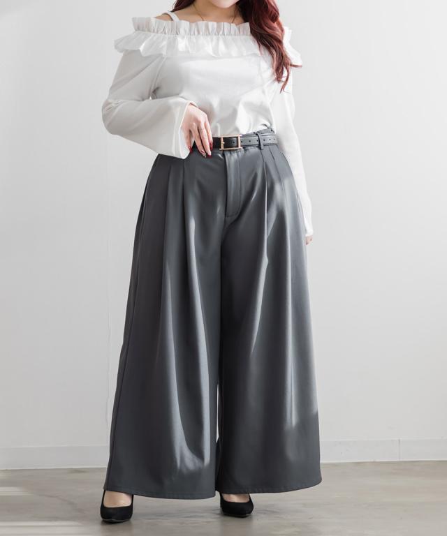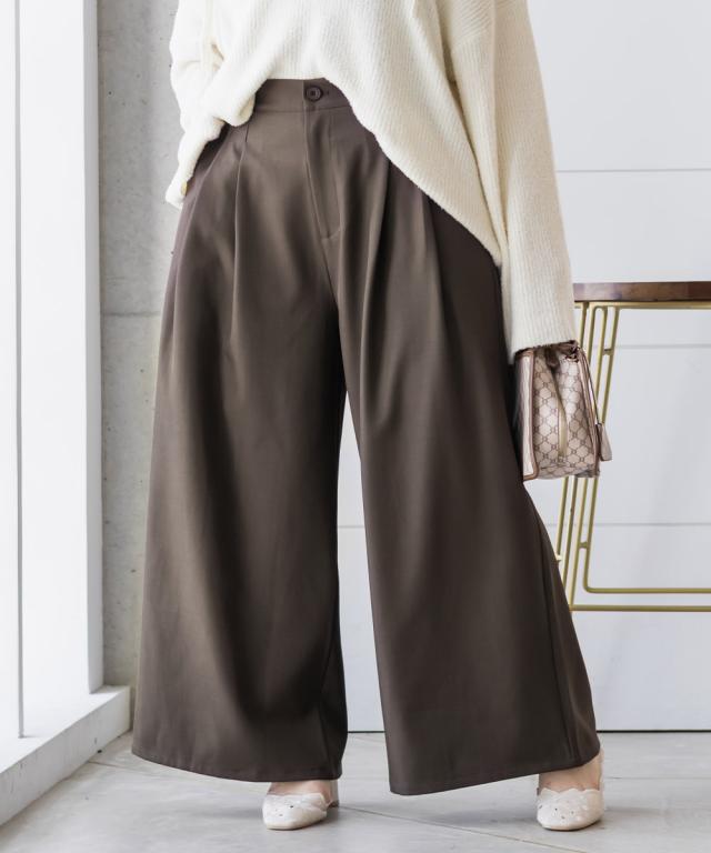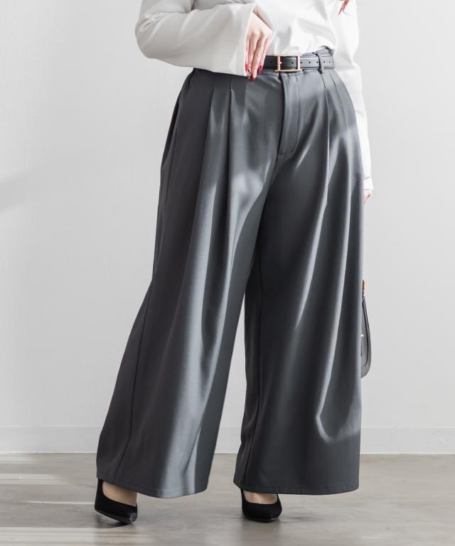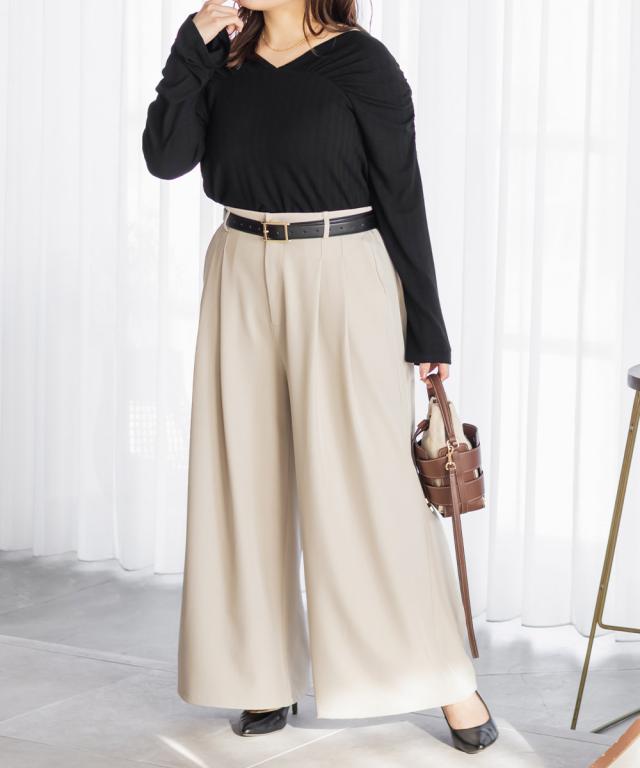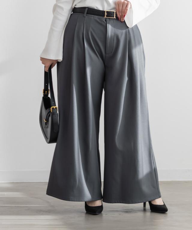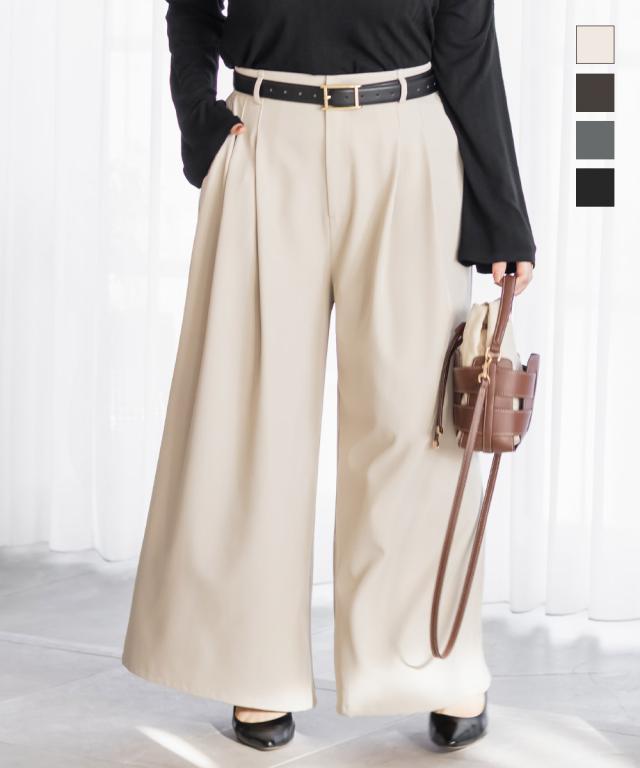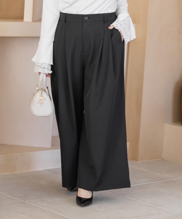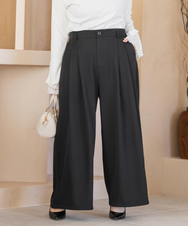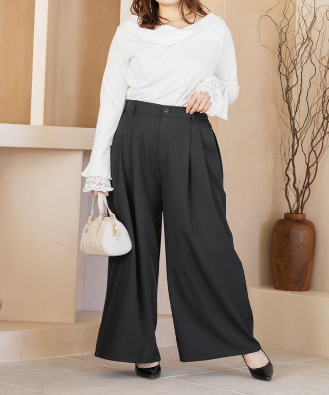 大きいサイズ/レディース/LL/3L/4L/CLETTEオリジナルタックデザインワイドパンツ