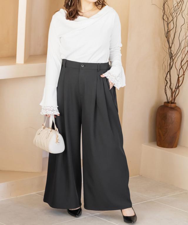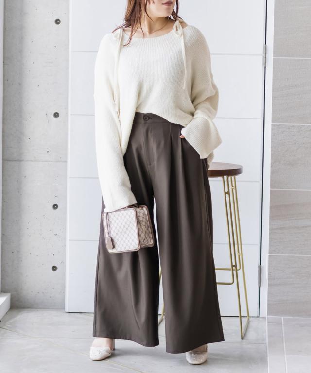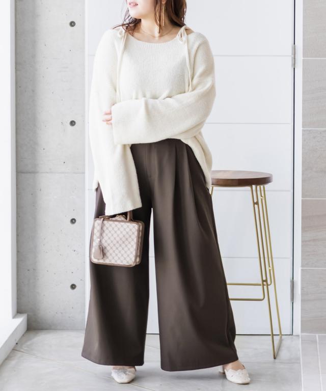 | 3Lを着用してちょうどいいサイズでした。しっかりゆとりがありつつすっきり見えるシルエットで、楽ちんな着心地です◎ワイドパンツだけどフェミニンなスタイルになれるアイテムで、可愛い系のトップスとも、シンプルなトップスとも相性がいいのでおすすめです。オールシーズン使える便利なワイドパンツです! |